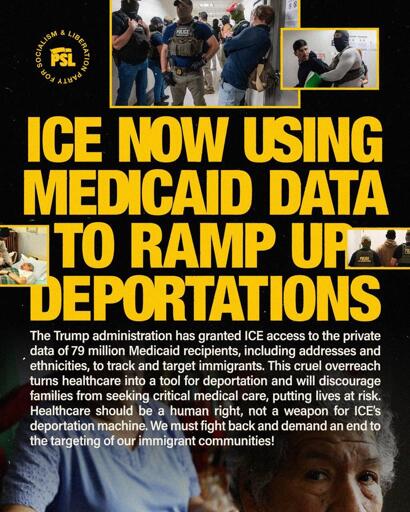 arrow-up11arrow-down1imageThe Trump Administration has granted ICE access to the private data of 79 million Medicaid recipients in a cruel overreach to facilitate the deportation machine.plus-squarelemmy.mlSpectre@lemmy.ml · 6 months agomessage-square0fedilink
