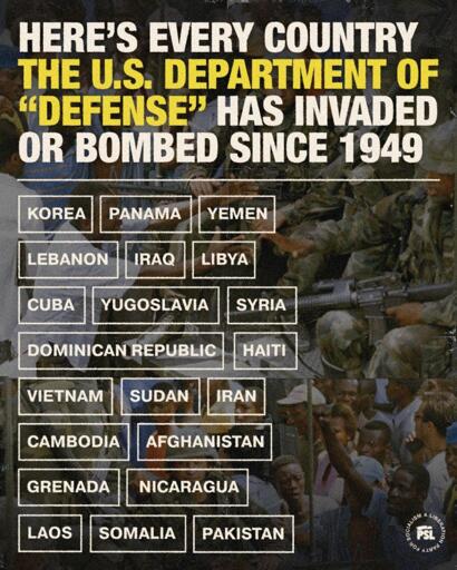 Spectre@lemmy.ml · edit-24 months agoHere's every country the US department of defense has invaded or bombed since 1949plus-squarelemmy.mlimagemessage-square0fedilinkarrow-up11arrow-down10