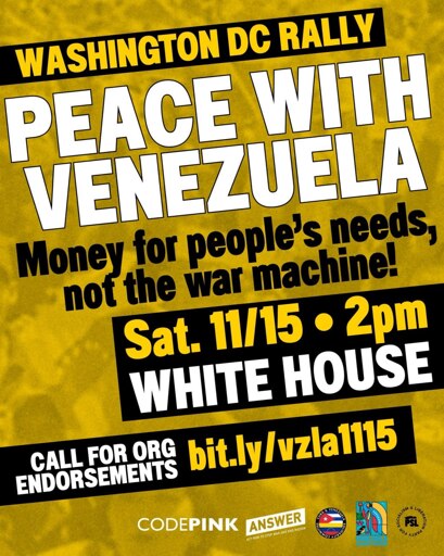 Spectre@lemmy.ml · 2 months ago🇻🇪SATURDAY IN DC: rally to say peace with Venezuela!plus-squarelemmy.mlimagemessage-square0fedilinkarrow-up11arrow-down10