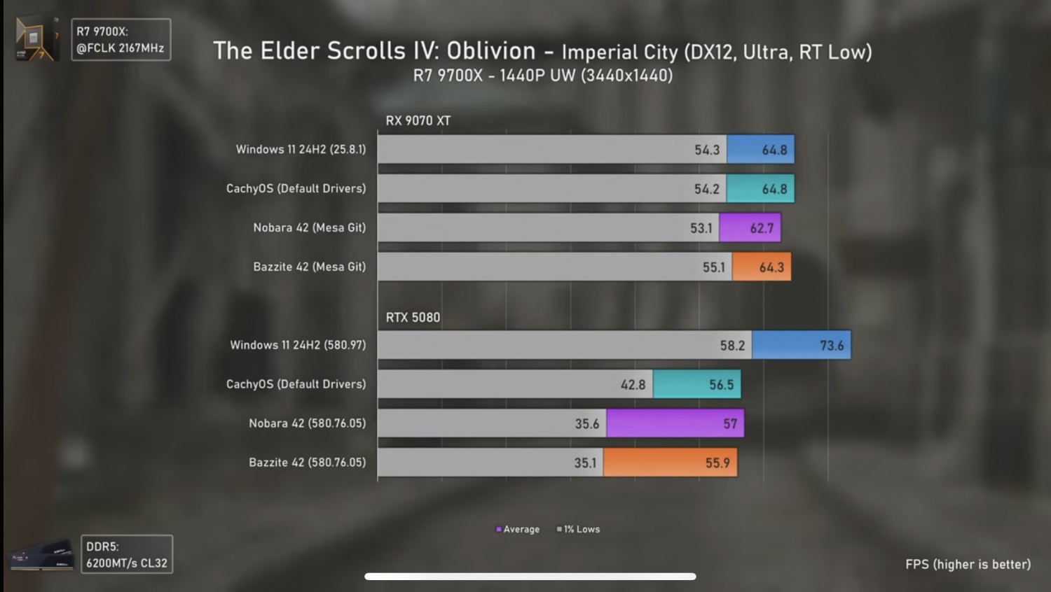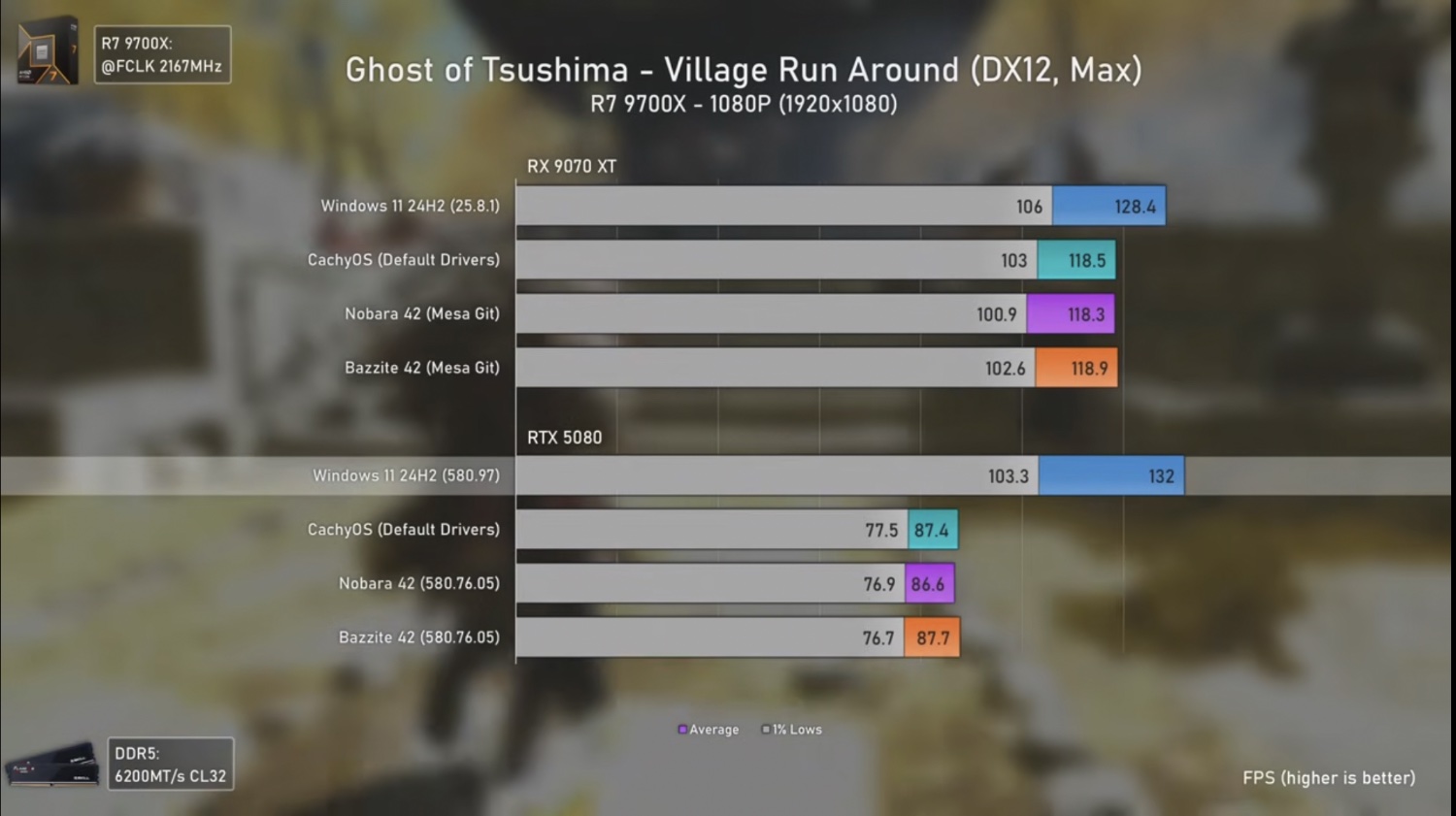 Do you see the pattern? If you’re one of the pc players who have a discrete GPU, 95%+ of you would be leaving massive, massive performance on the table by using Linux over Windows. Even if you’re in the tiny minority who have an AMD card, you’re not really getting any better performance on Linux, you’re just losing access to a bunch of the most popular games, and getting slightly worse performance fairly often.
