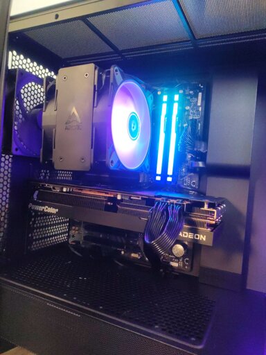 Specs: CPU: Rysen 5 7600 GPU: RX 7700 XT RAM: 32 GB DDR5 5600mt/s Mobo: B650 Eagle AX Case: H5 Flow RGB Cooler: Arctic Freezer 36 A-RGB PSU: System Power 10 750w