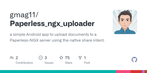 So I had a chance to try this out. It wasn’t on Google Play Store, only F-Droid. There isn’t really SSO support, you either login with User/Password or a token. Instead, I login with my browser, get the token and paste it in. That works fine, but an ideal world is just pop up an browser WebView and go through the flow, then grab the token. Maybe it was intentional, but PaperlessShare registered as an Open handler for PDFs and the share menu, whereas this is only share menu. This seems to mean that I need to grant file access, whereas the open handler didn’t need that I think.