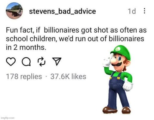 If billionaires got shot as often as school children, only billionaires would be allowed to have guns within a week …