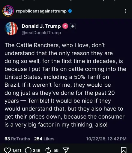 yoooo if we get MAGA to turn against cattle ranchers that might actally be huge for american politics in the long term