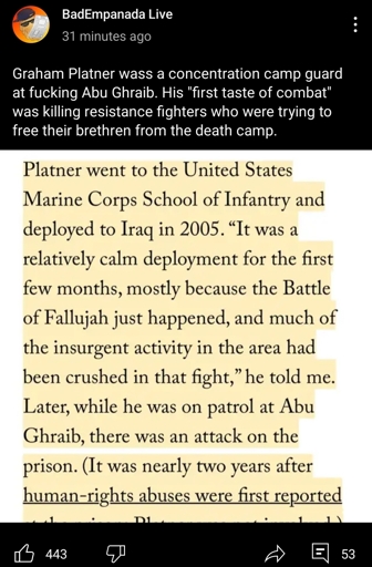 1: prison with human rights abuses is not the same as an extermination camp 2: very little of what he says here connects to the screenshot and doesnt link to the article 3: badempanada is a soulless clout-chasing shithead who will say anything for clicks