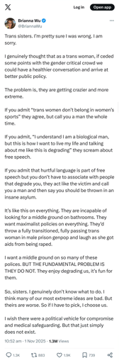 Is Brianna wu grifting to the left because she realizes there isn’t a place for her on the right anymore? I’m a bit too cynical to believe this is legitimate since the right has been like this for quite a while. Just with the trump admin the center right position on the trans movement is not a profitable option for pundits anymore
