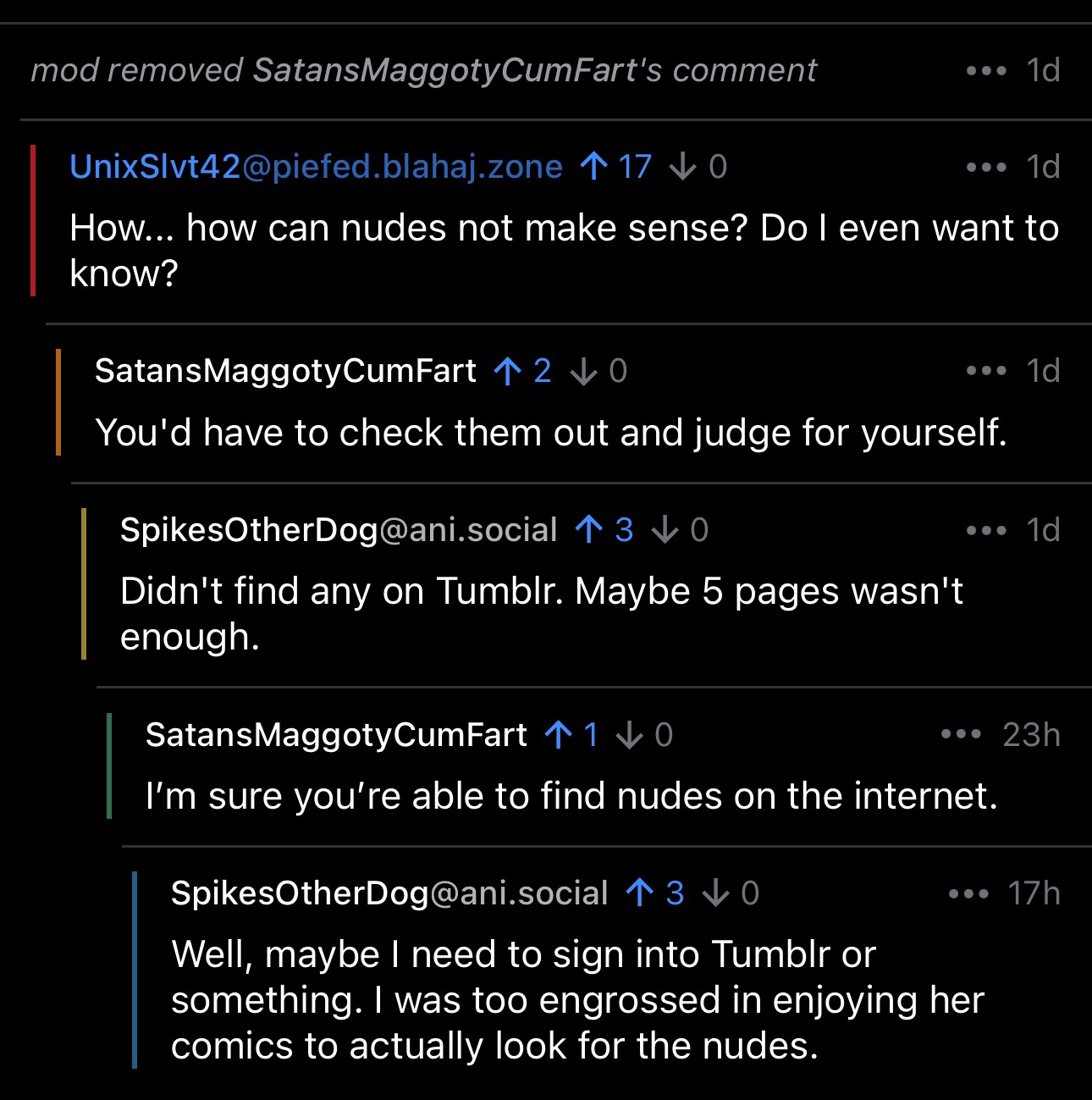 A completely normal conversation with strangers for @SatansMaggotyCumFart@piefed.world