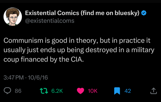 arrow-up11arrow-down1imageCommunism in theory vs in practicelemmy.mlSpectre@lemmy.ml to Memes@lemmygrad.ml · 10 months agomessage-square0fedilinkfile-textcross-posted to: memes@lemmy.ml