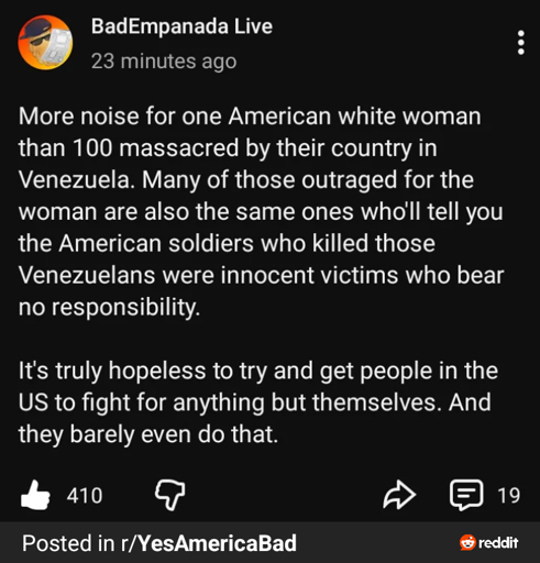 I don’t think there is more noise about the woman ICE murdered than there is about Venezuela.