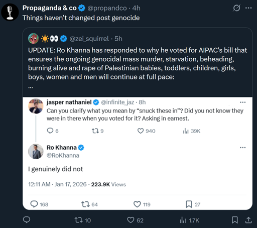 So, I kind of believe that Ro Kanna, personally, might not have known about whatever the specific provision in this bill was.