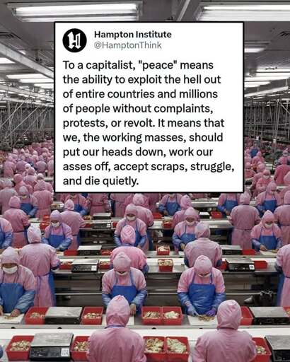 I knew I recognized this pic from somewhere. I used google lens and found it’s from some pretentious smug lib artist. It’s a photo of workers inside a manufacturing plant in China. And there’s no evidence whatsoever that the workers were maltreated.
