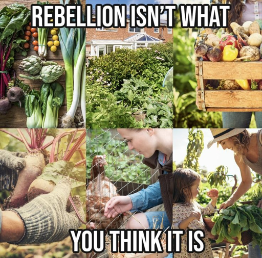 I doubt that that would be the case, but it is possible that the chickens are free-roaming and the human and garden are fenced in. Either way, freeing others from cages would be the revolutionary act that I would want to promote. No one is free until everyone is free.