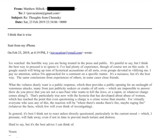 Assuming there’s nothing more sinister going on with Chomsky (and I really don’t know what to think there), what does that tell us about the world and the people around Epstein? I find it odd to have some of the greatest minds with a positive influence but also some of the most disgusting people in the same circle.