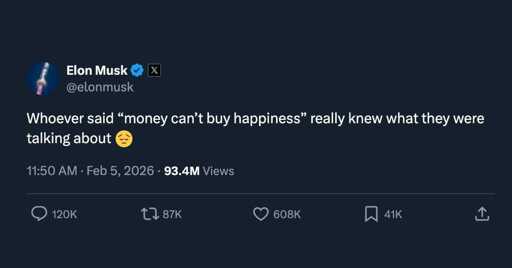 The richest person in the world, who got there by exclusively lying his ass off about literally everything