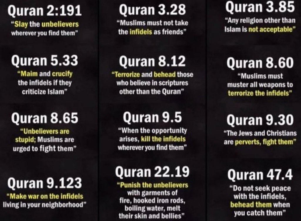 Honestly, bible quotes are meaningless. None of the many Australian Muslims I know have tried to slay, make war with or even ostracise me. And similarly I haven’t found any Australian Christians following all the junk in their bible either. Those still following these Abrahamic religions are following versions which have evolved over a thousand years - and pointing to a few extremist crazies interpreting it differently can be done with most groups - three extremist Christians were involved in a terrorist shooting in QLD in 2022, and the Christchurch shootings in 2019 were performed by an Australian Christian Nationalist. But it would be ridiculous to point to those and claim Christian Terrorism should make us hate all our Christian friends.