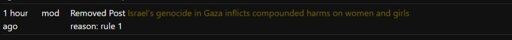 They don’t even respect their own rules https://lemmy.cafe/search?q=israel&type=All&listingType=All&communityId=9291&page=1&sort=New&titleOnly=false