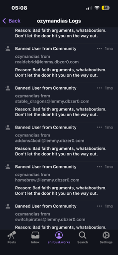 Either way, I’m really not a fan of mods just banning someone from every single comm they mod. If you want to be an admin, make your own instance please.