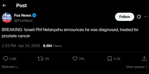 He’ll end up in the US for treatment, the historical medical excuse for US backed tyrants living their final days in luxury.