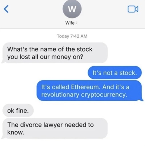arrow-up11arrow-down1imageWife changing moneylemmy.mltracyspcy@lemmy.mlM to Bωockchain@lemmy.ml · 23 hours agomessage-square0fedilinkfile-textcross-posted to: lemmyshitpost@lemmy.world