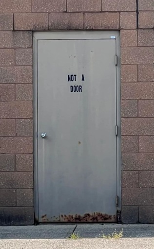 The door has the words “NOT A DOOR” on it.