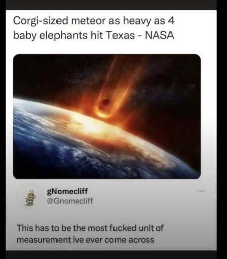 Some people are just more comfortable with good old familiar units like baby elephants per corgi. What do they even use for that in the metric system? Millihectares per decilitre or something? Whatever.