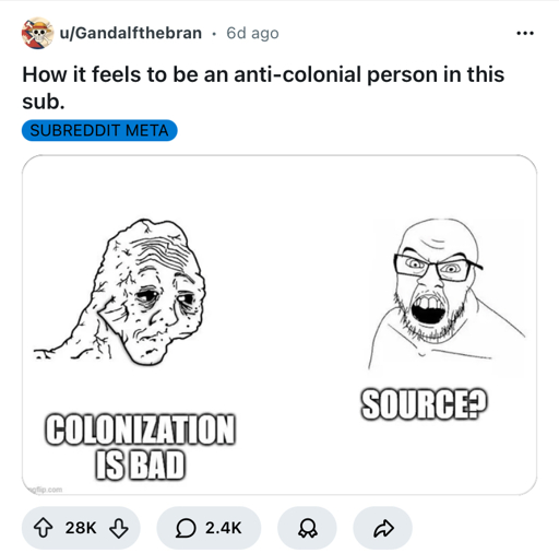 arrow-up1-1arrow-down1imageSettler Colonialismlemmygrad.mlCoco 📕@lemmygrad.ml to Memes@lemmy.mlEnglish · 1 year agomessage-square0fedilink