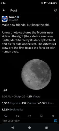 Karmanopoly@lemmy.world to No Stupid Questions@lemmy.world · 4 days agohow can NASA themselves claim no one has seen the far side of the moon before?plus-squarelemmy.worldimagemessage-square5fedilinkarrow-up111arrow-down11