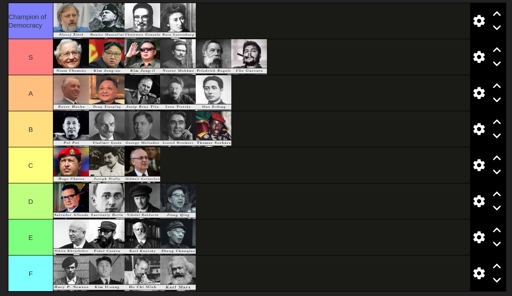 https://tiermaker.com/create/the-marxist-tierlist-15360924 You gotta edit it yourself to get those three categories though