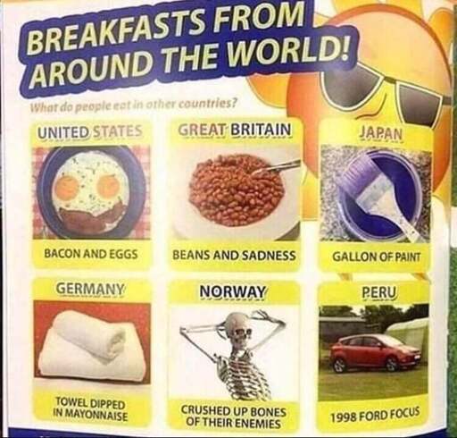 arrow-up11arrow-down1imageBreakfasts from around the world!lemmy.mllelgenio@lemmy.ml to Memes@lemmy.ml · 3 years agomessage-square0fedilink