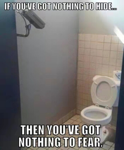 owiseedoubleyou@lemmy.ml to Memes@lemmy.ml · 2 years agoYou truly have nothing to hide, don't youlemmy.mlimagemessage-square1fedilinkarrow-up10arrow-down10