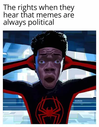 the right are wrong [ne/nem] @sh.itjust.works to Memes@lemmy.ml · 3 years agoThe rights are afraid of all the CoMmUnIsT mEmEssh.itjust.worksimagemessage-square0fedilinkarrow-up11arrow-down10